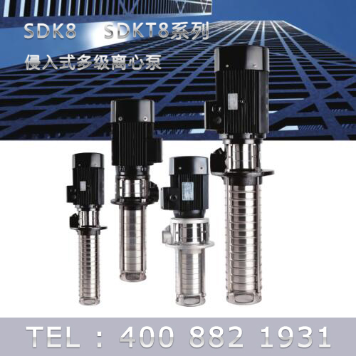 SDK8/SDKT8為配用標(biāo)準(zhǔn)電機的非自吸立式多級離心泵,電機軸和泵軸用聯(lián)軸器直接聯(lián)接的結(jié)構(gòu)。為滿足水槽或容器的安裝深度,可安裝空套的腔體來改變泵本身的侵入 深度。